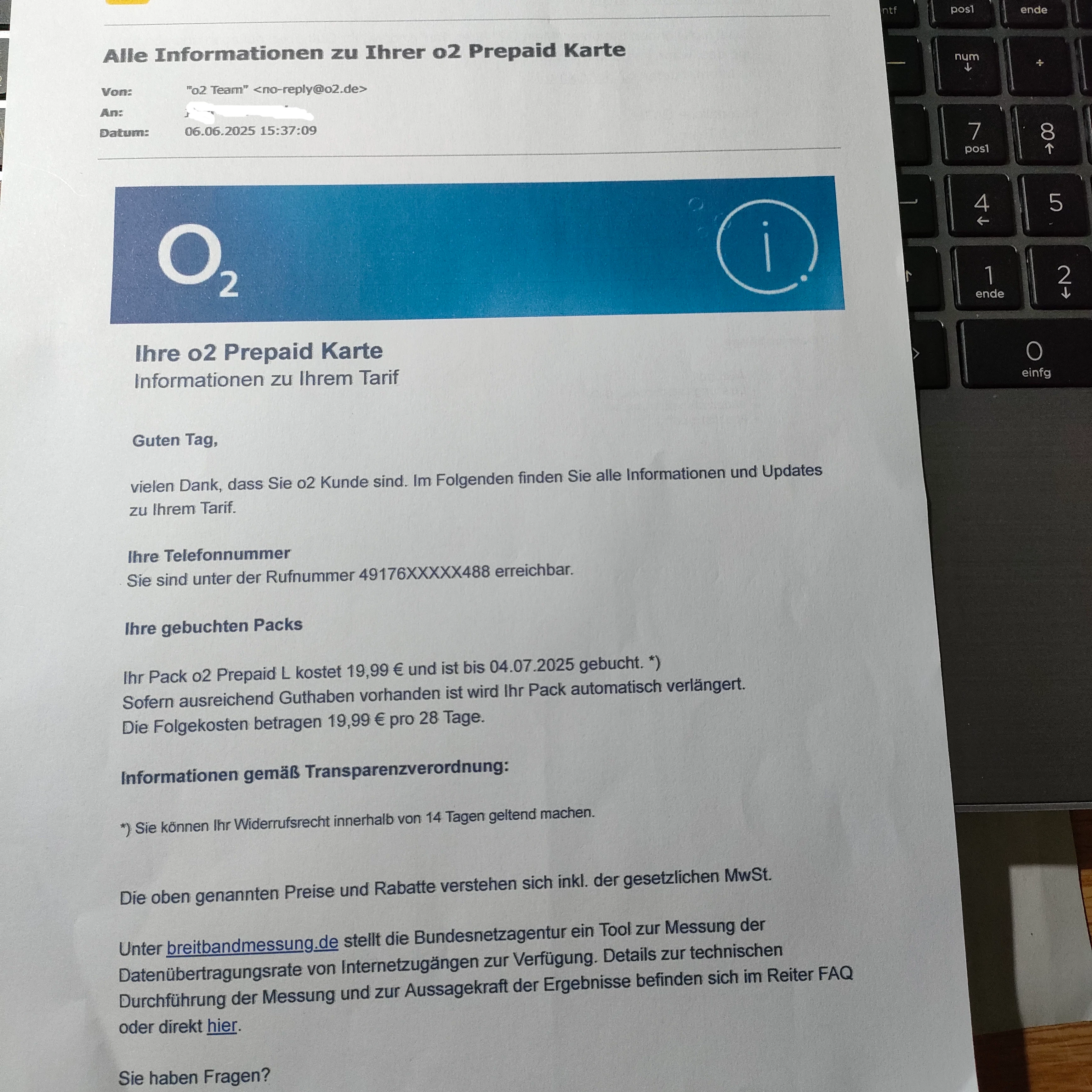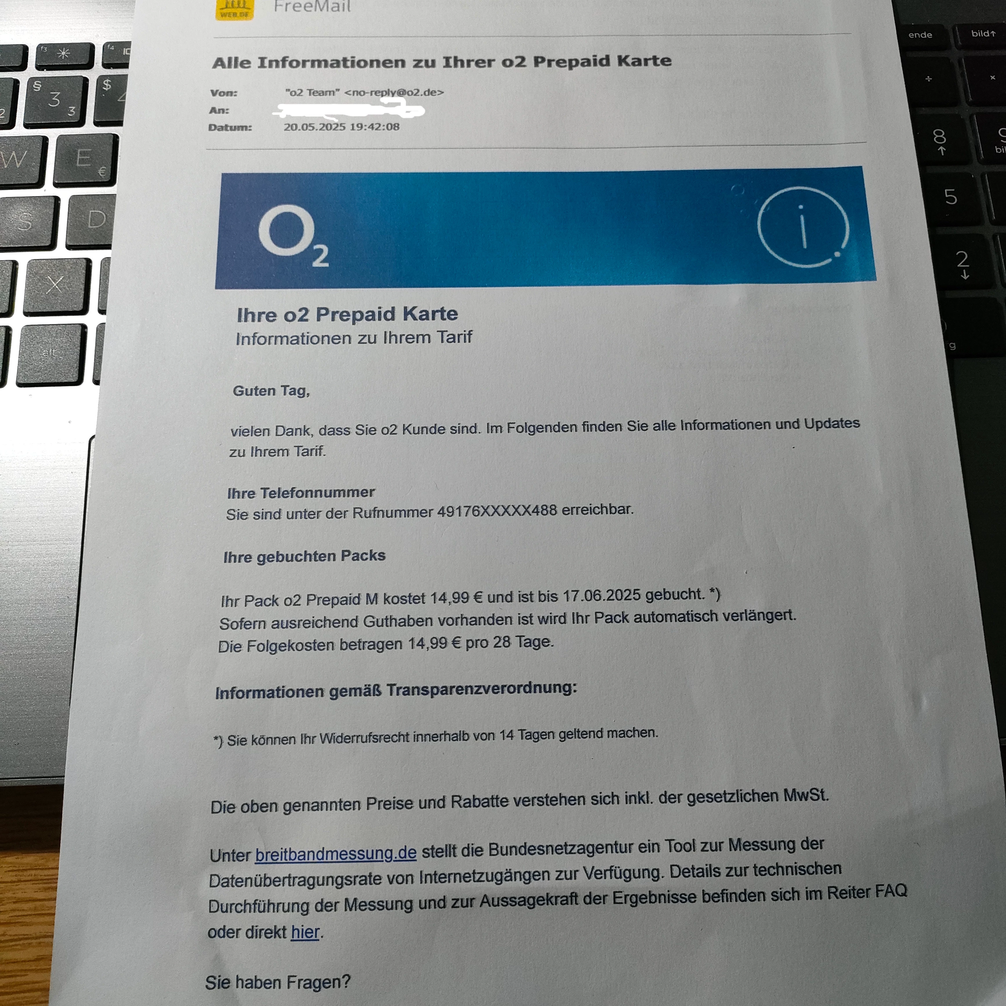 Ich habe jetzt im Mai 2025  und im Juni 2025  e-mail von O2 bekommen.