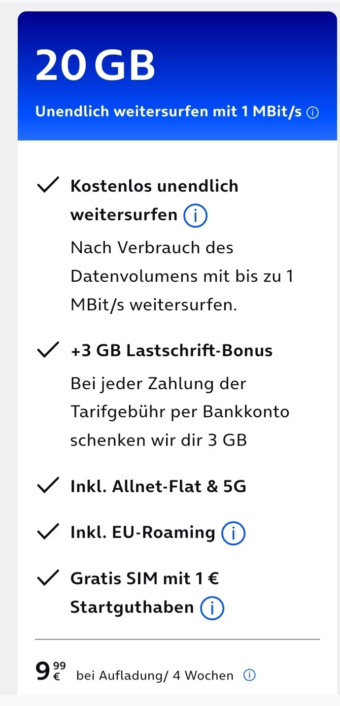 Brauche kein Datenvolumen, da der Tarif nicht fürs Smartphone ist!