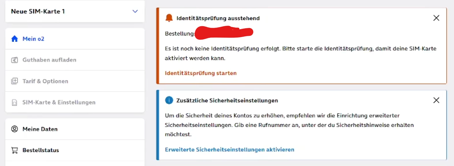 also: die erste sim-karte mit o2 prepaid s läuft.