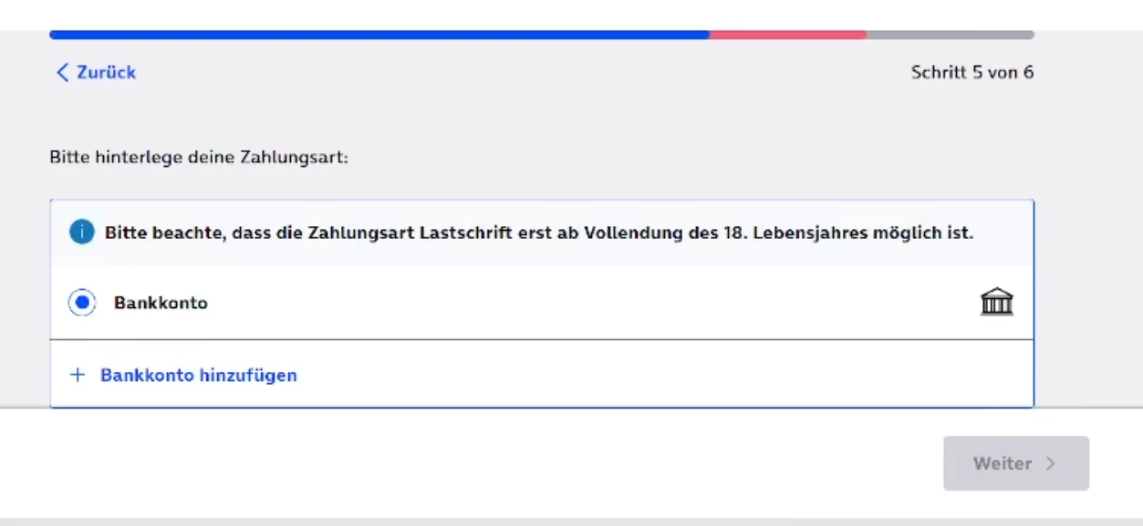 keine Zahlungsart in der zweiten bestellung möglich wie in dieser ersten Bestellung