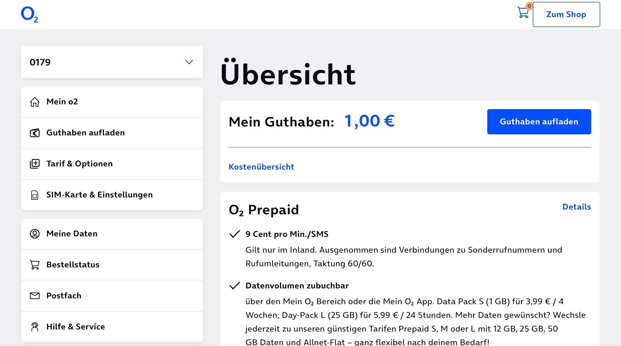 Weiter oben war die Rede von einer Aufladung mit einem Cent. Ich habe einen Euro überwiesen. Die Aufladung wurde von o2 bestätigt, ABER: