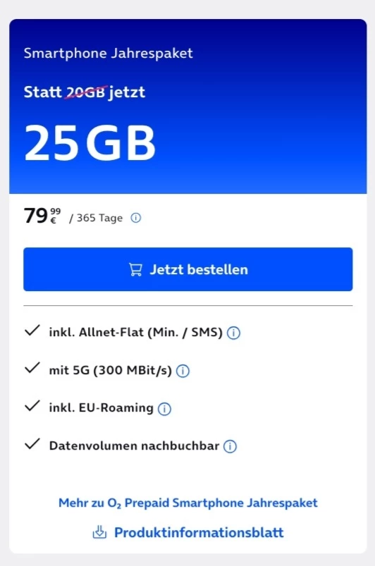 Zur Zeit haben wir unsere drei Jahrespakete für Prepaid, in denen wir seit dem 28.04.2025 für Neukunden das Datenvolumen erhöht haben.