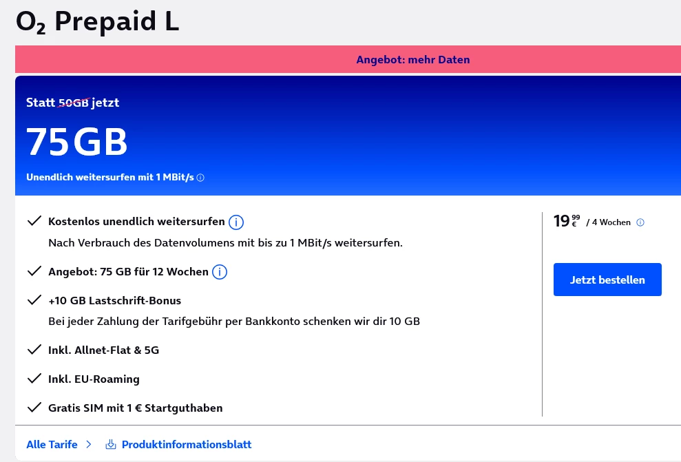 das prepaid pack L kostet schon lange 19,99€