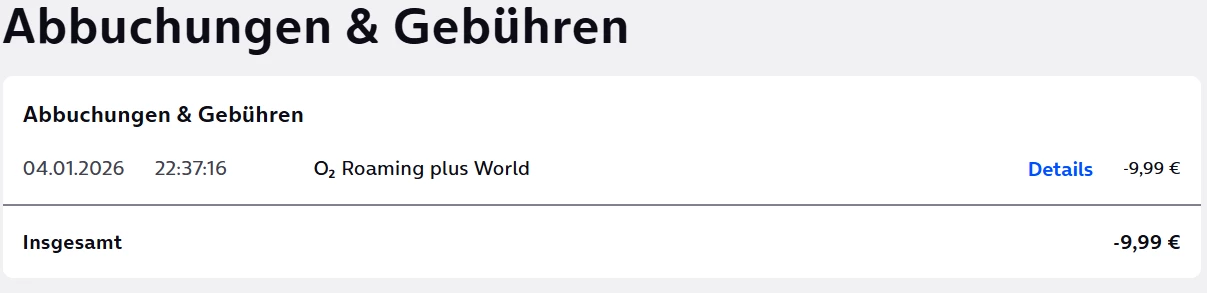 schaue doch mal in die App ob bei Roaming Plus World abbestellt zum 12.01.2026 steht?