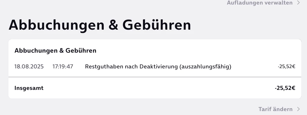 Restguthaben wurde heute überwiesen.