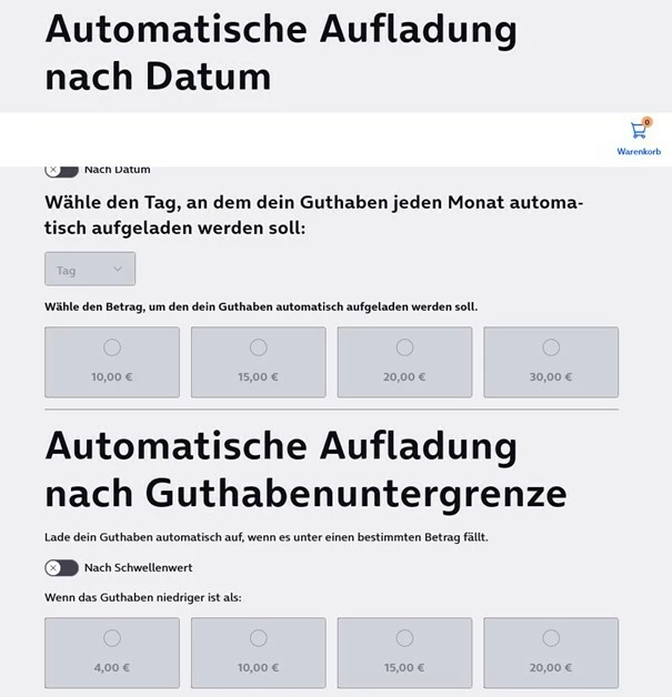 bitte prüfe genau,  ob das monatliche Aufladen aktiviert ist,