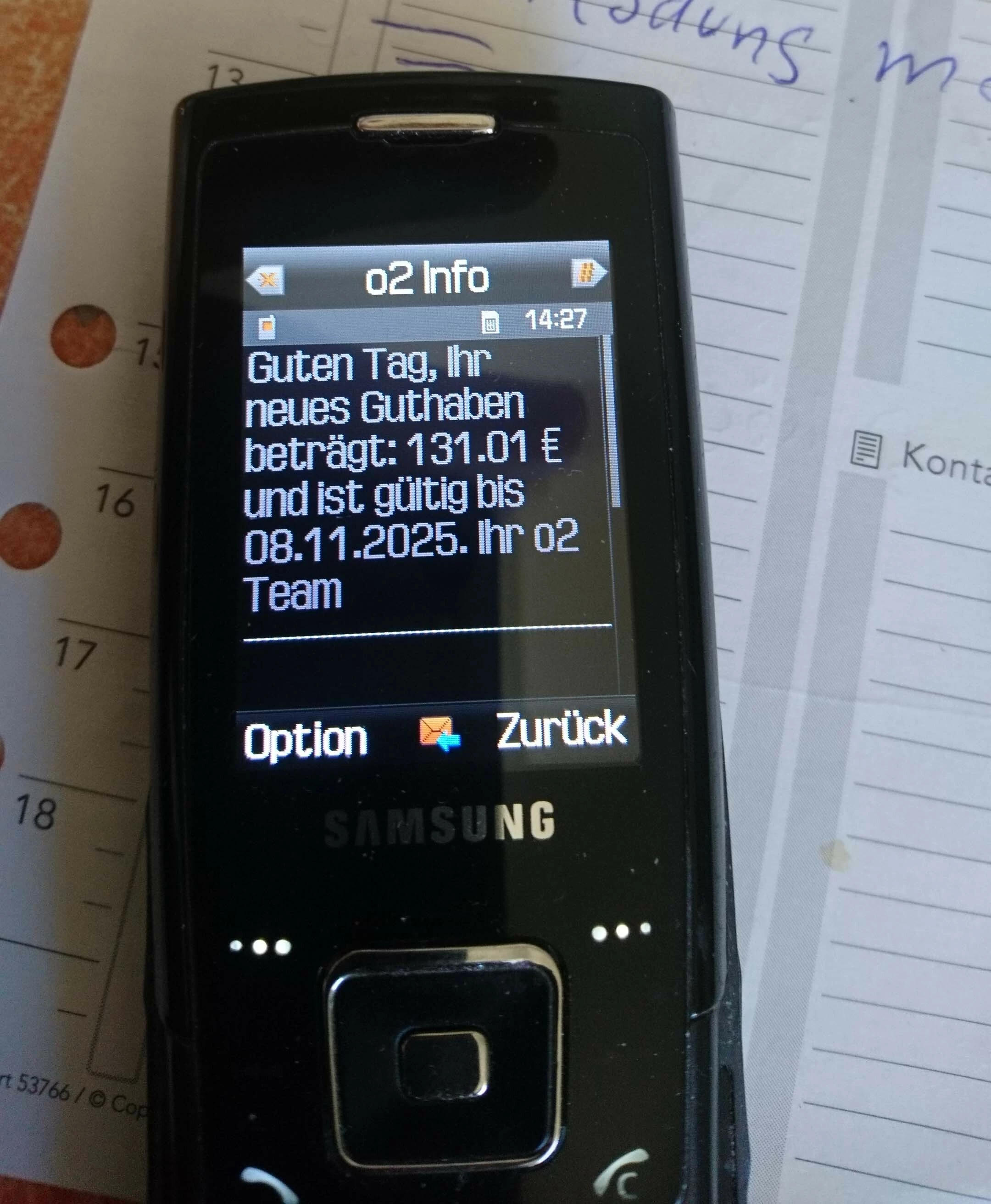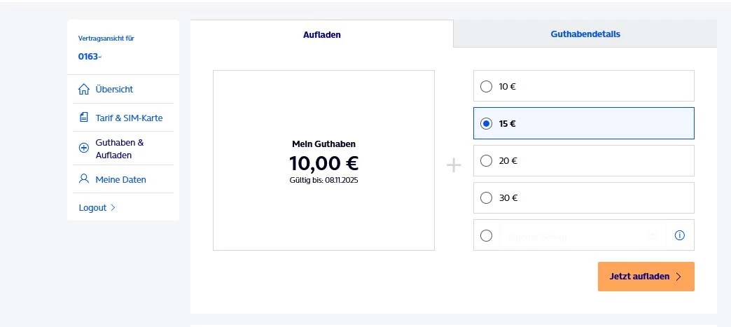 Da ich alle 6 Monate mit 15 Euro aufladen musste (sonst wird die Karte deaktiviert) und ich damit so gut wie nie jemanden anrufe ist mittlerweile ein Guthaben von über 131 Euro auf der Karte. Das aktuelle Guthaben der Karte ist bis zum 08.11.2025 verfügbar.