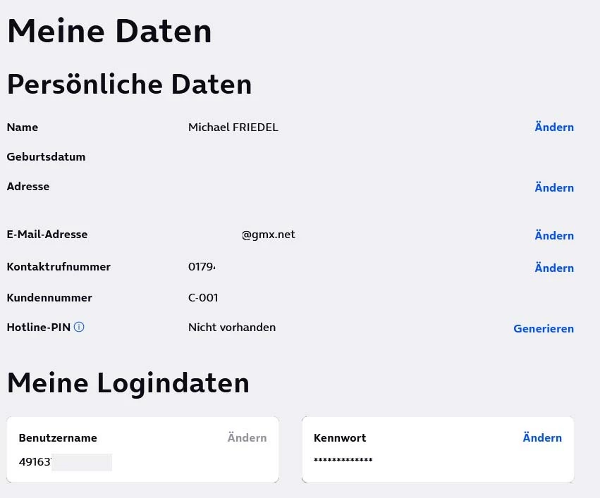 Die Telefonnummer für die SMS kann ich auch nicht im Portal ändern.