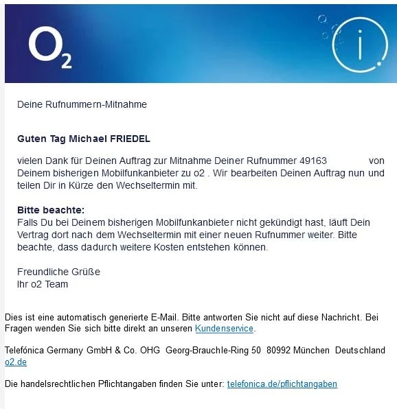 Am 15.9.2025 wäre dann die Frist abgelaufen und meine alte Rufnummer dank o2 weg.