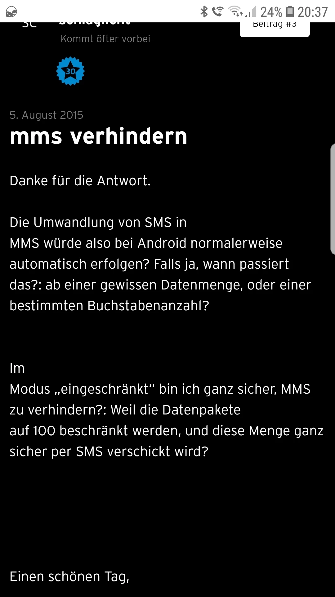 @Gmo Leider findet sich so eine Einstellung nicht bei mir zum Einschränken der MMS.