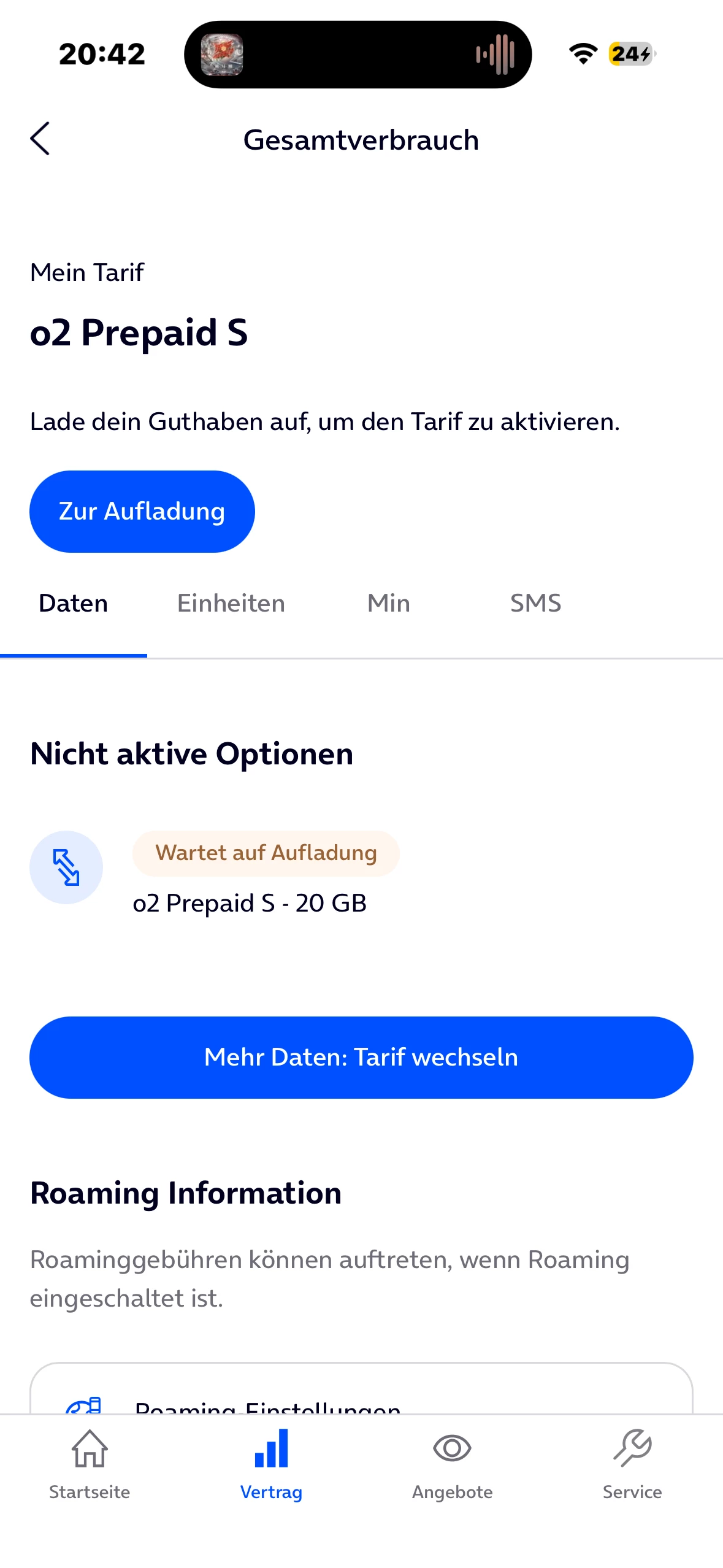 Wie auf dem Bild zu sehen ist, habe ich jetzt keinen Datenvolumen