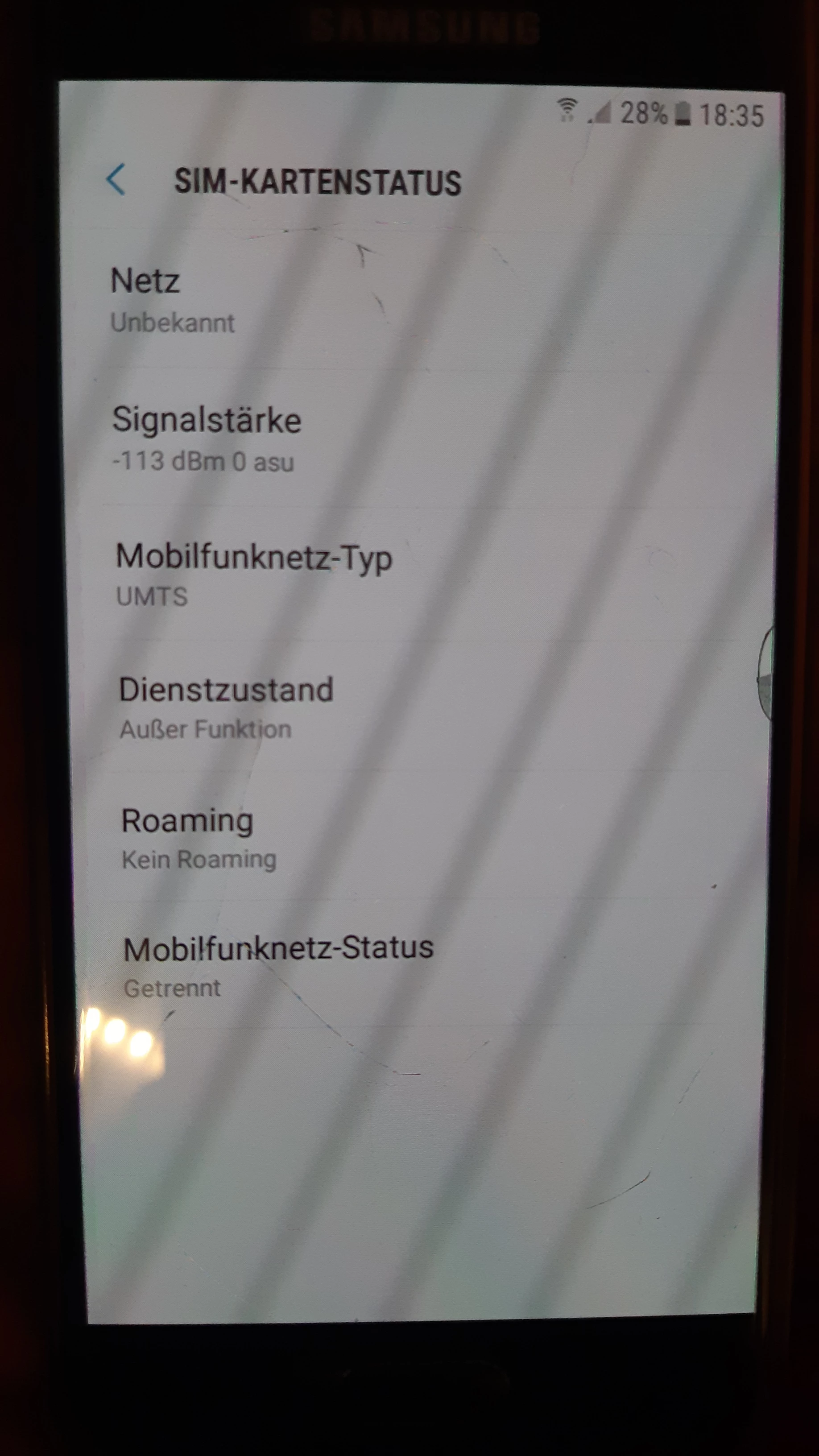 Ausschalten hat auch nicht geholfen, und Aufladen kann ich eben nicht, weil die Registrierung nur über SMS funktioniert, die aber nicht ankommt...
