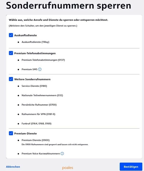auch der Bereich zum sperren der Sonderrufnummern sieht gut aus.
