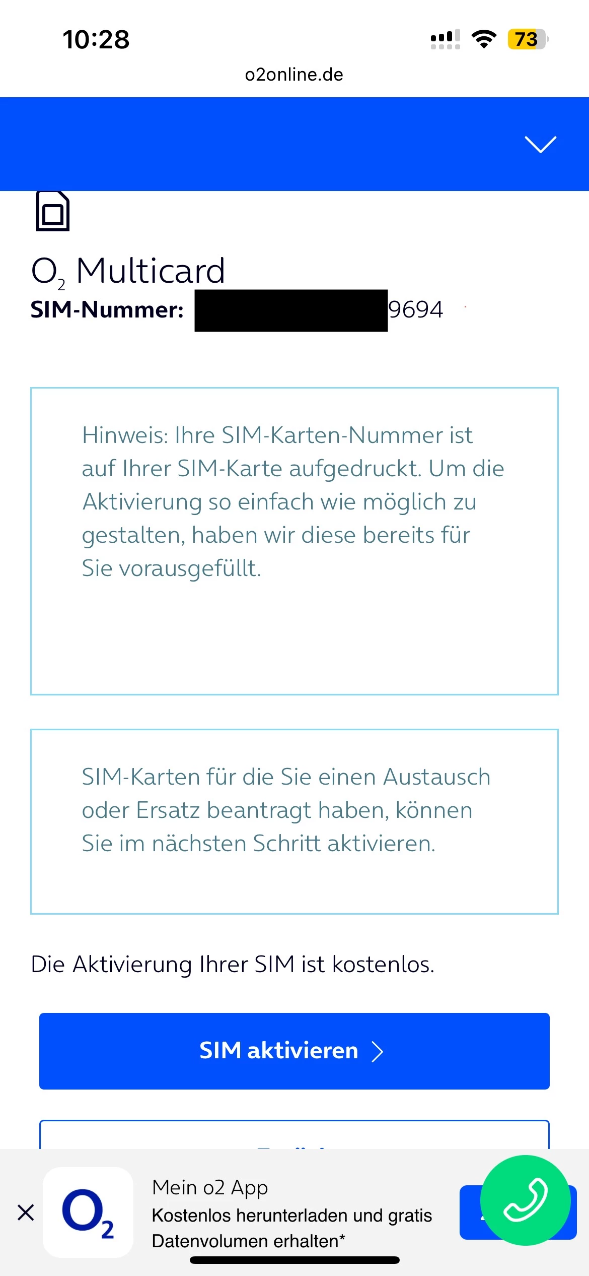 Die Ersatz-SIM wurde nun aktiviert. Die Multi-Card leider noch nicht.