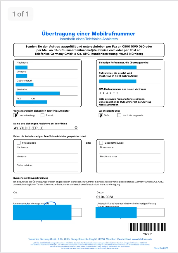 Die Daten die beim bisherigen Telefonica Anbieter gespeichert sind, hast du noch ergänzt?