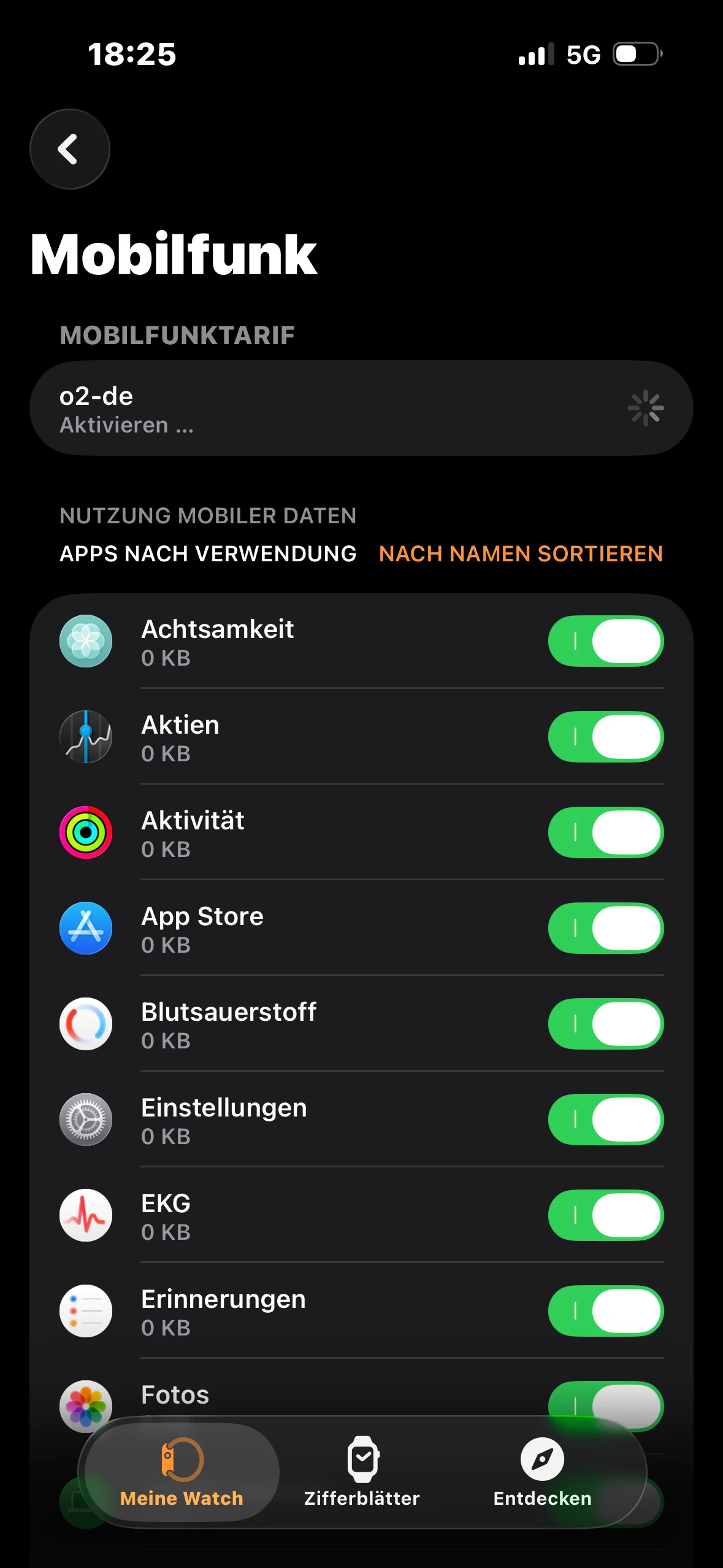 • Ergebnis: genau dasselbe Problem – Aktivierung hängt, keine Mobilfunkdaten auf der Watch sichtbar.