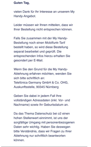 Weil in der Tat ist es eigentlich wirklich so das eher der MyHandy Vertrag abgelehnt wird und nicht der Mobilfunkvertrag.