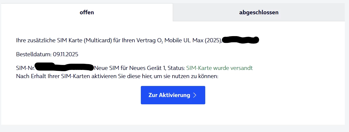 Die Ersatz-SIM sowie die eine Multicard habe ich bereits aktiviert und sehe das auch so in meinem Kundenkonto.
