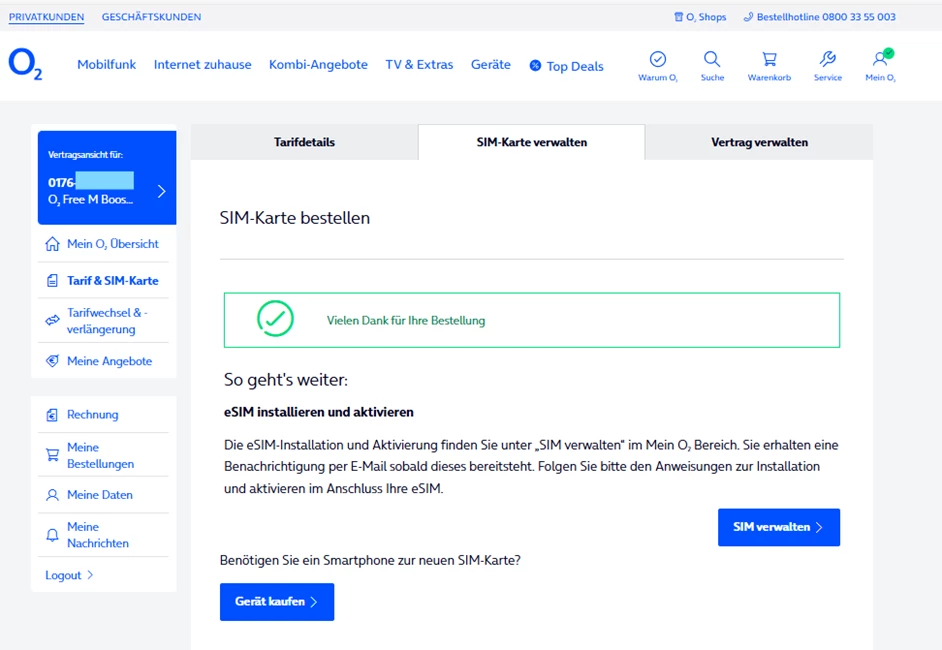 Hier ist noch ein hilfreiches Video, wie ihr die eSIM direkt im Onlineportal bestellen könnt: