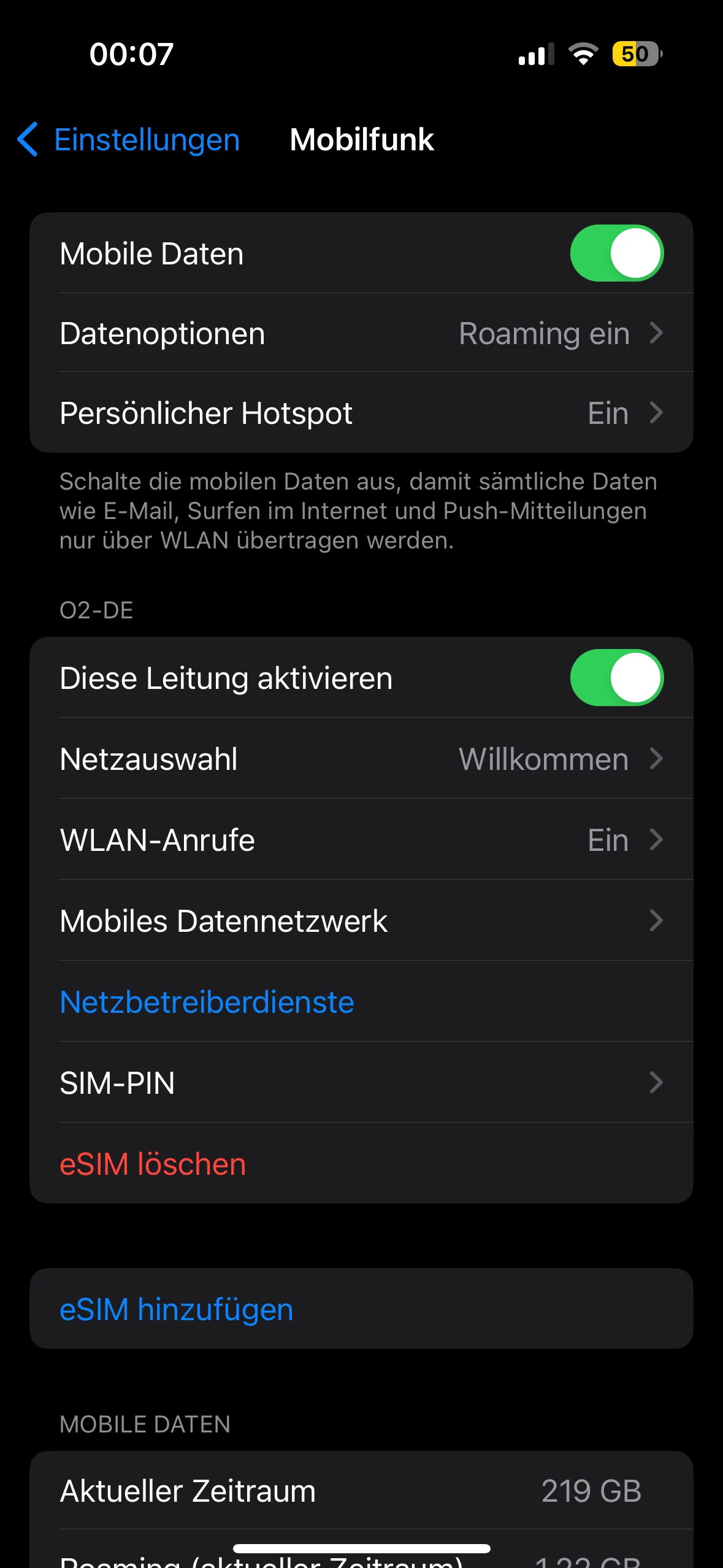 Allerdings sehe ich auch noch eine offene Rechnung, welche zu einer Sperre deiner mobilen Daten führte.