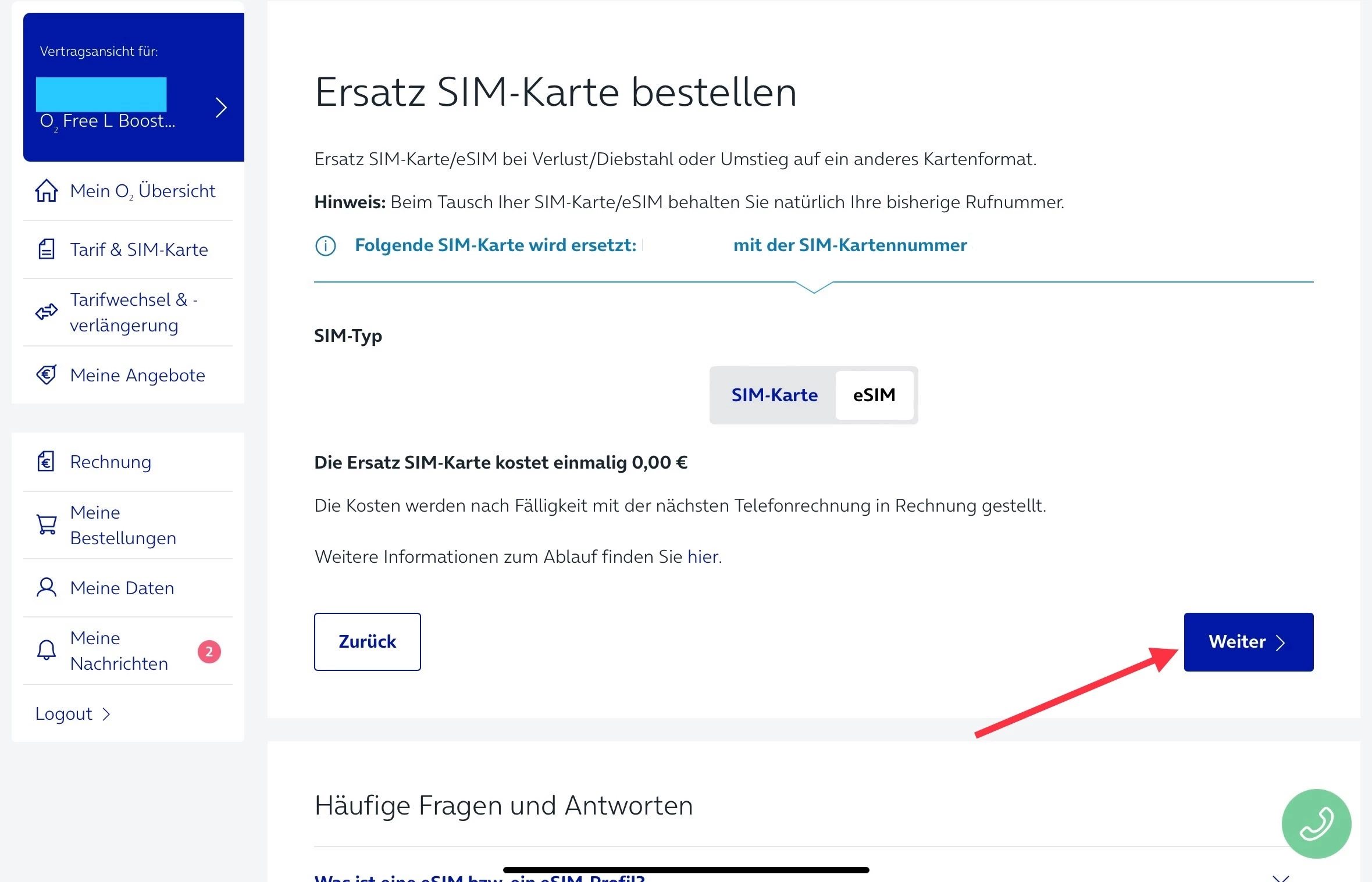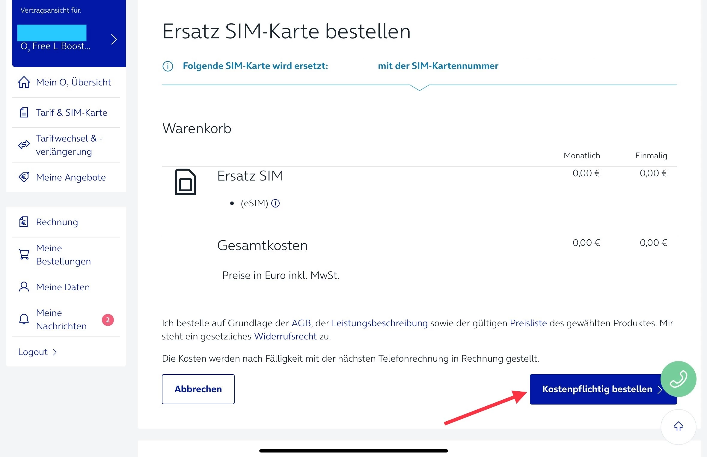 Da geht es auch nicht mit der Ersatzkarte. Da kommt dann die Meldung “SIM-Karte konnte nicht bestellt werden. Bitte versuche es später erneut”. Ich kann hier leider keinen Screenshot machen. Ist anscheinend nicht erlaubt.