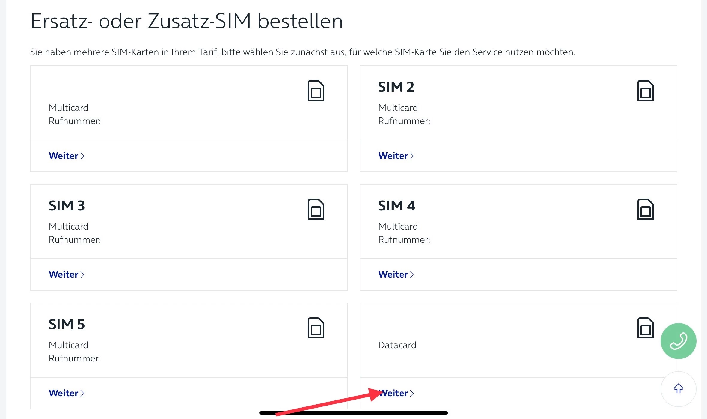Möchtest du eine zusätzliche Multicard oder Datacard bestellen oder ein Ersatz eSIM Profil?