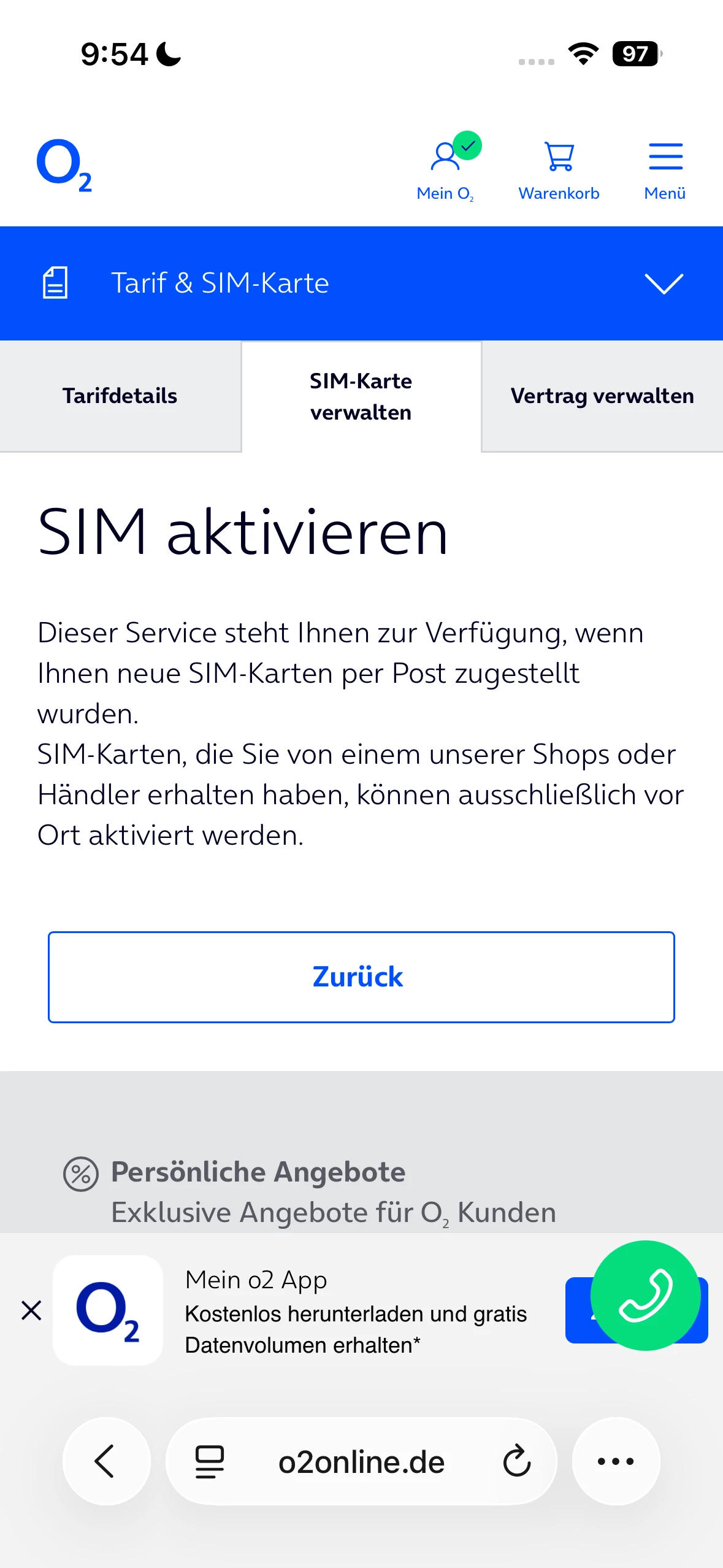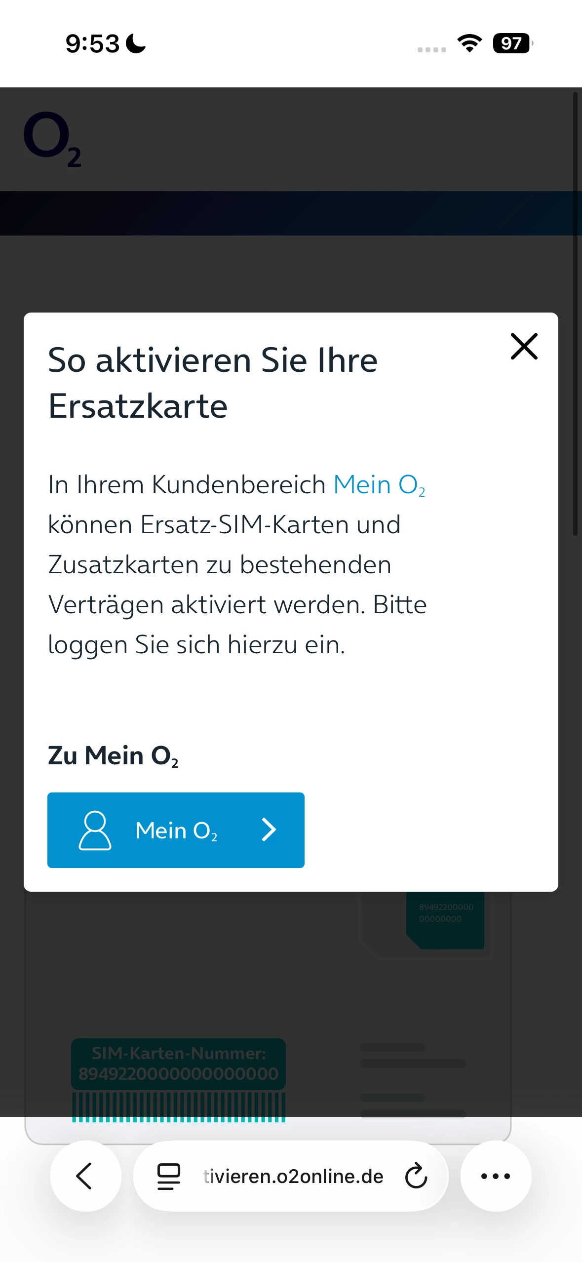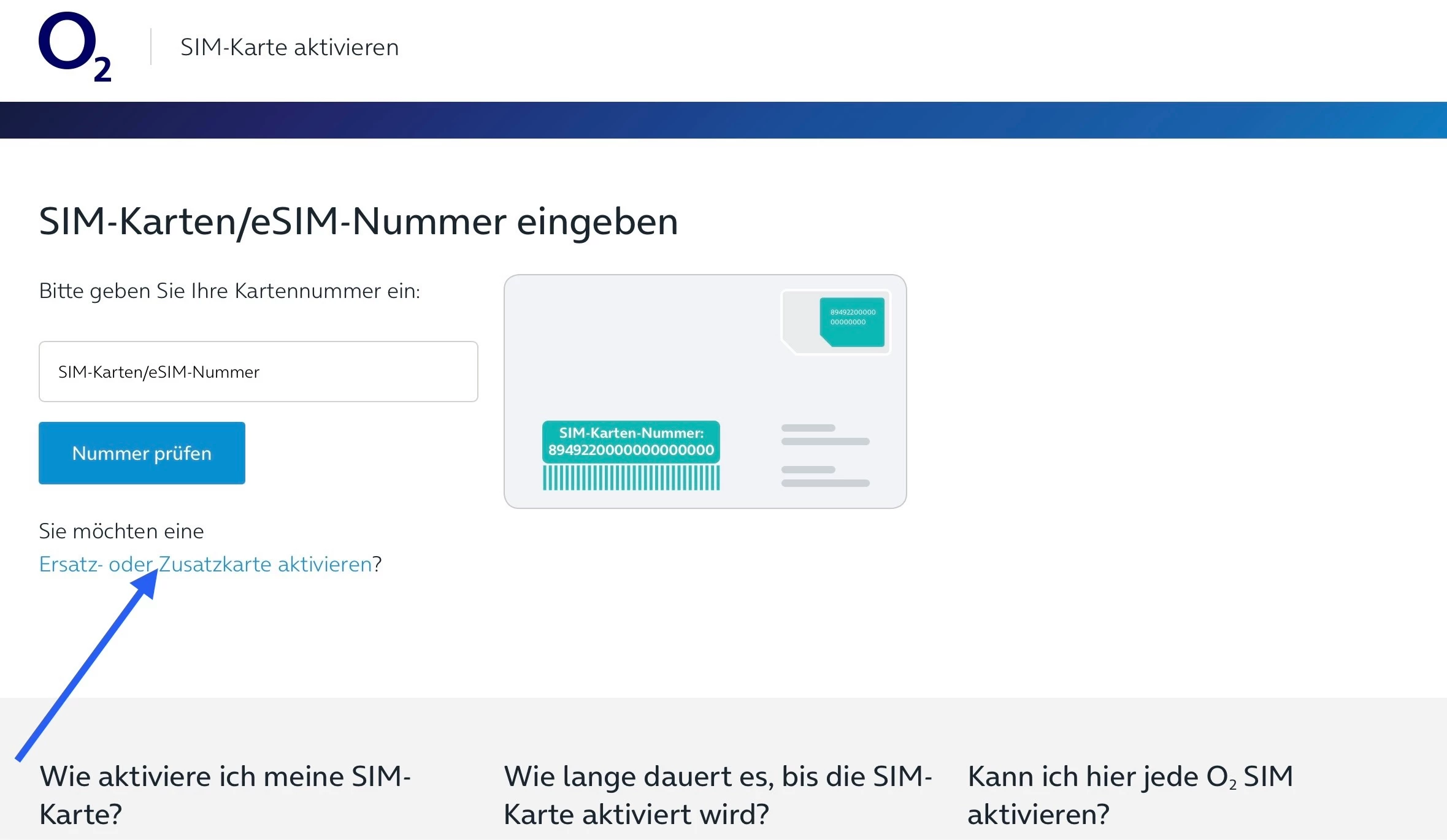 "Dieser Service steht Ihnen zur Verfügung, wenn Ihnen neue SIM-Karten per Post zugestellt wurden.