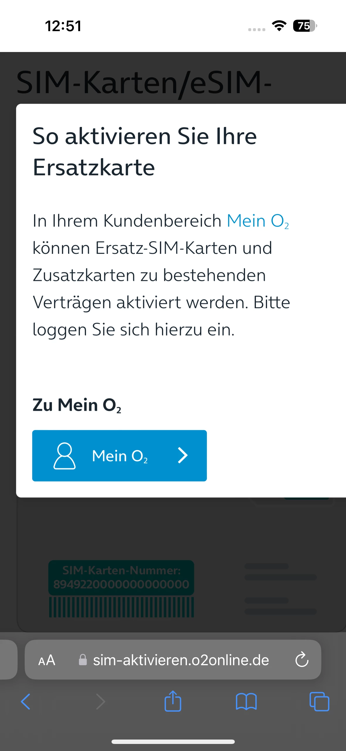 Und zwar habe ich meine Ersatz sim Karte bekommen mit der sim Nummer :8949XXXXXXXXXXXX