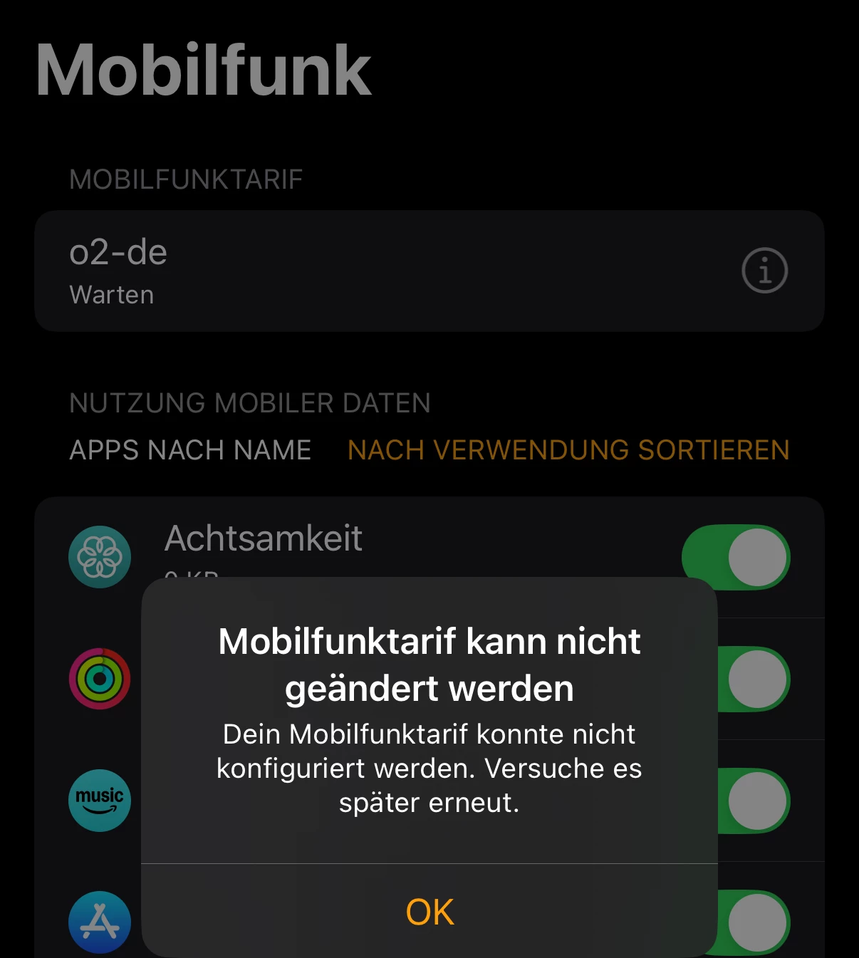 Bei der eSIM Aktivierung hat sich der Auftrag im System verhakt.
