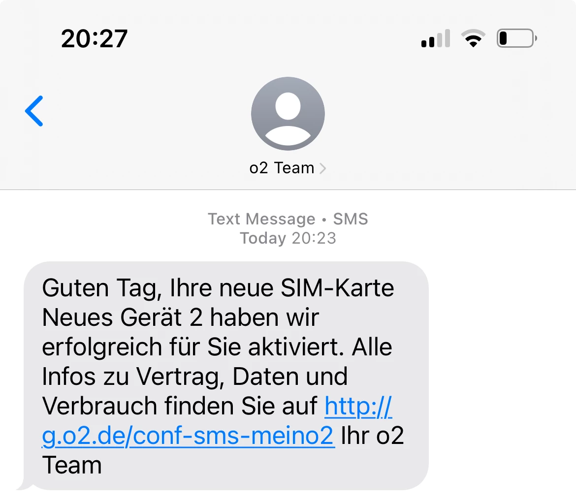 Hallo ​@o2_Rebecca , kannst du bitte prüfen ob ein Ticket noch auf ist (Nummer endet im 414)? Die eSIM war wieder lange Zeit im Status „warten“ / „Aktivieren“ ….. dann plötzlich wieder weg. Habe es heute Abend wieder erneut bestellt - sms ist angekommen, aber nichts weiter?!?