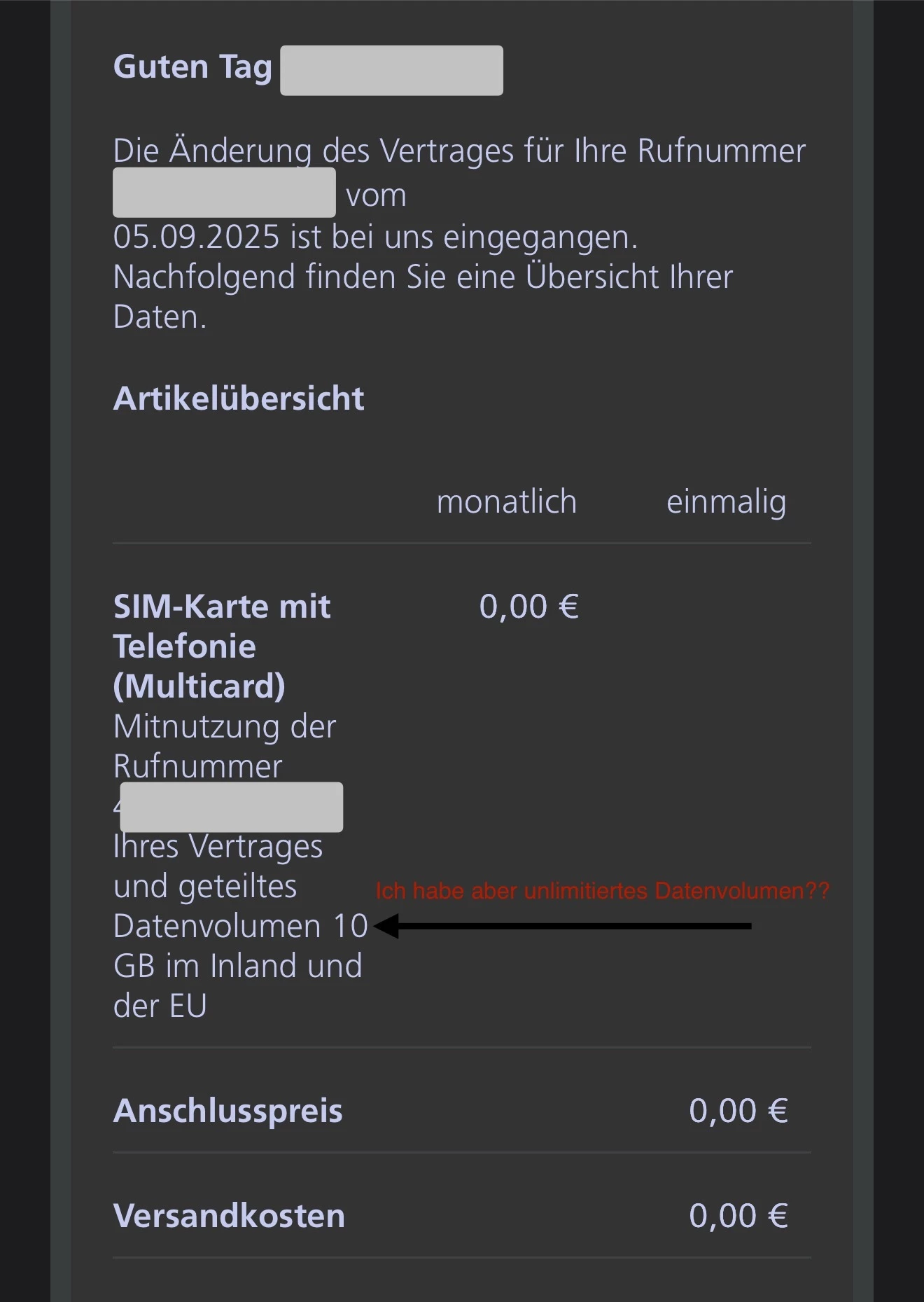 Ich habe seit dem 02.08.2025 Unlimitiertes Datenvolumen und in der gestrigen Mail stand dies: