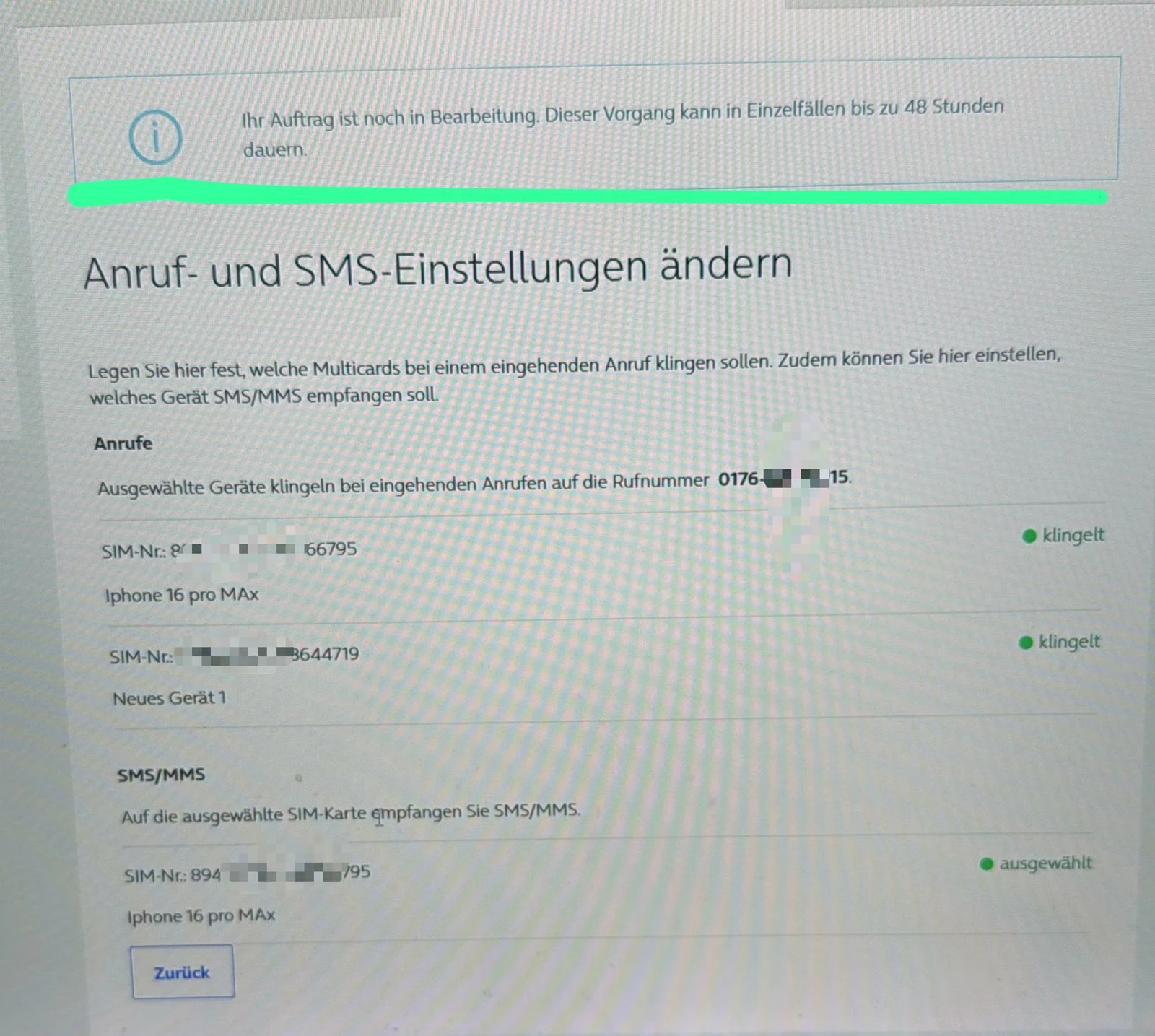 Aber noch mal zum Fall, du siehst, dass es noch in Bearbeitung ist, aber nicht in welchem Schritt der Bearbeitung? Auch deswegen möchte ich jetzt  ungern noch mal in o2-App und Apple Watch Mobilfunkkonfiguration herumspielen. Das sorgt ja dann nur für Unordnung.