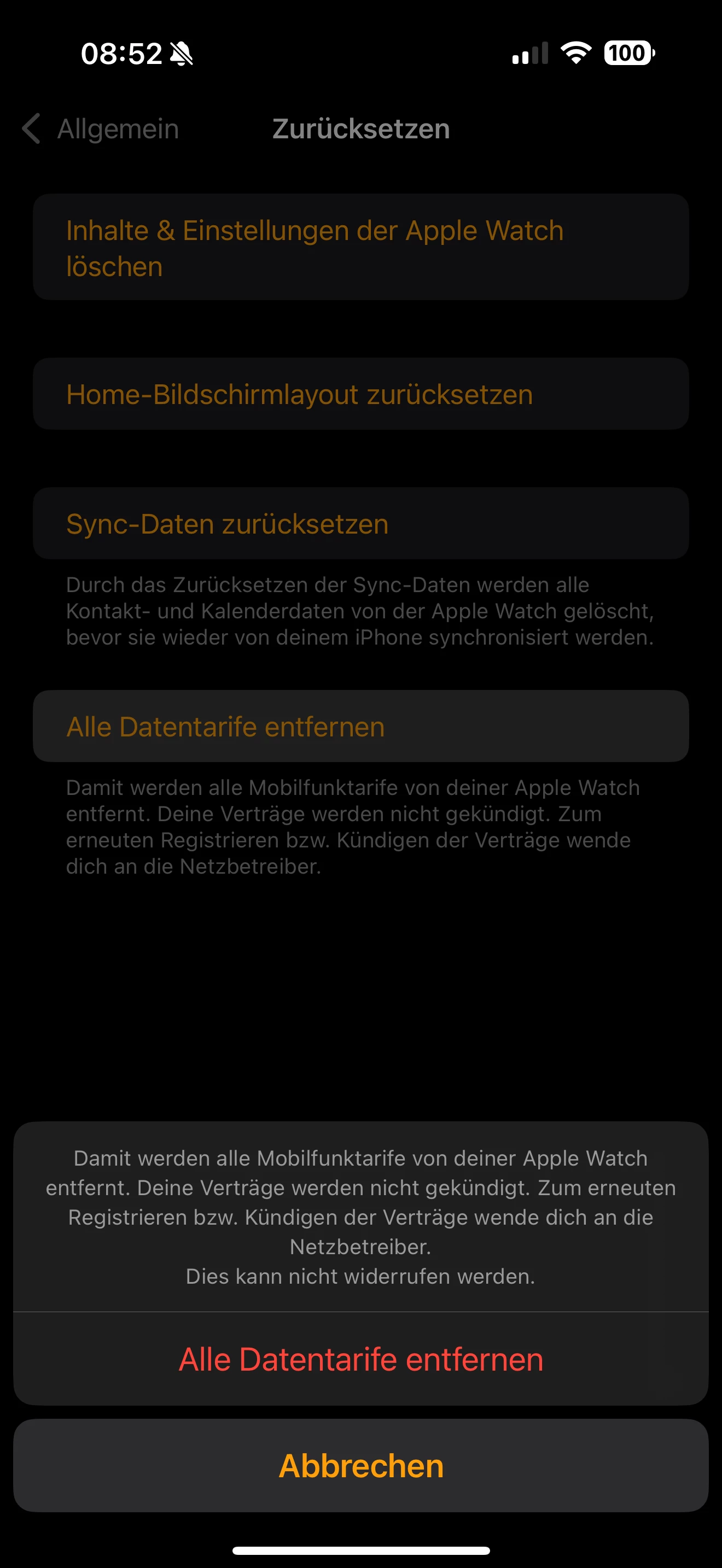 was passiert, wenn du auf “Alle Datentarife entfernen” gehst ?