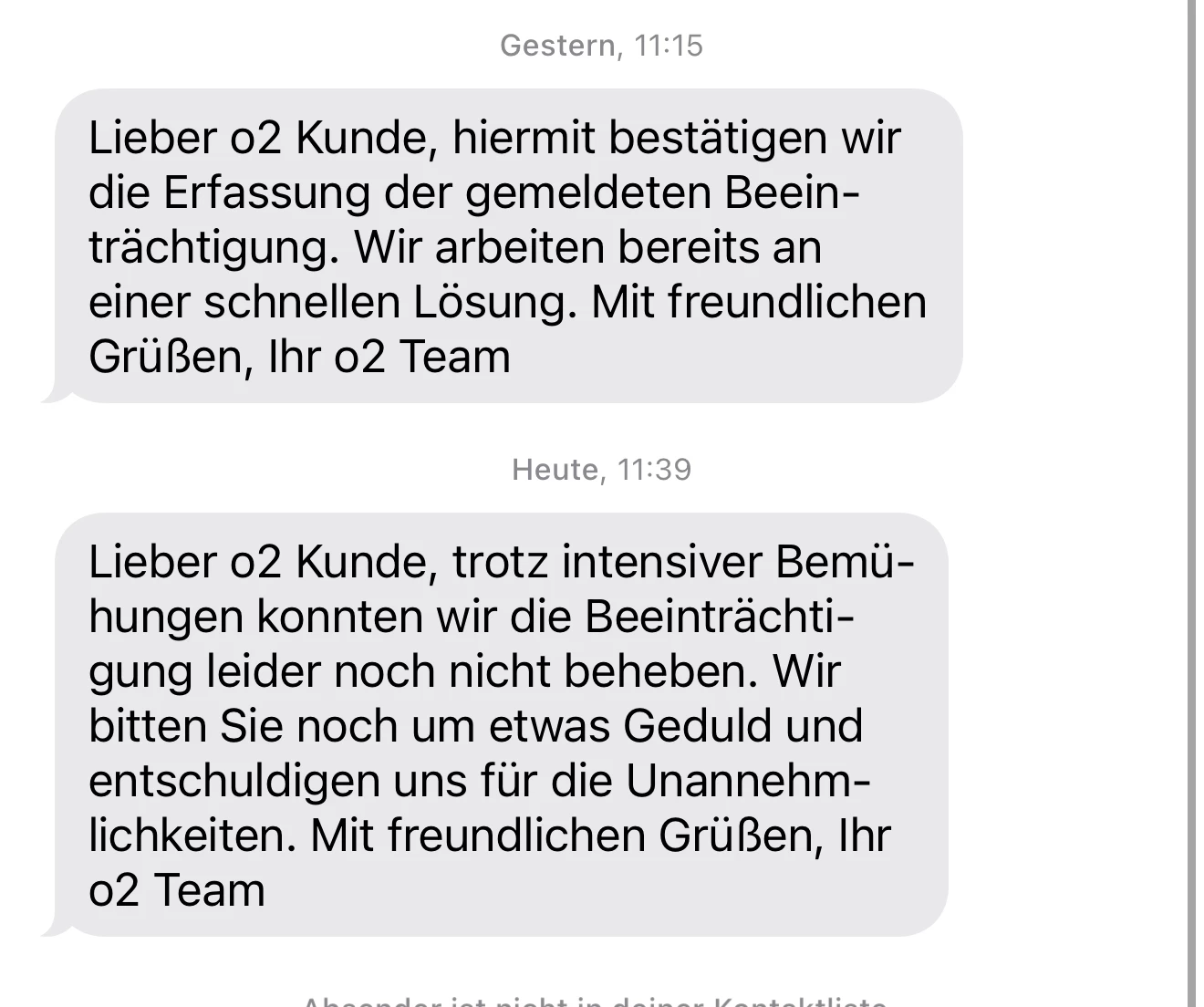 Gestern und heute bekam ich eine SMS, ich vermute mal das ist das Technik Ticket von ​@o2_Solveig