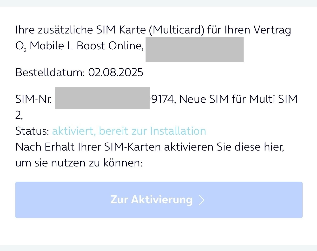 Kannst ja mal damit loslaufen und darum bitten, dass man prüft ob diese SIM-Kartennummer noch aktiviert werden muss und wenn ja, diese bitte aktiviert.