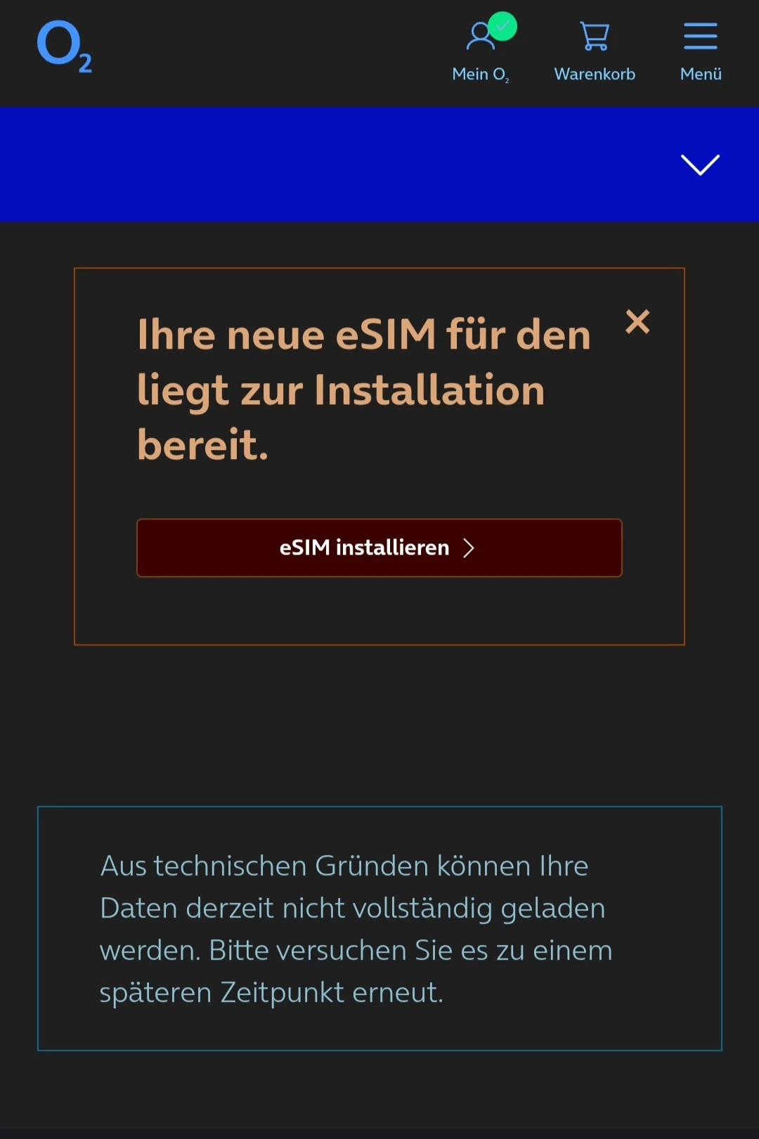 in Mein O2 Drücke ich bei eSIM, Datacard auf aktivieren komme ich auf eine Seite mit dem Tiel