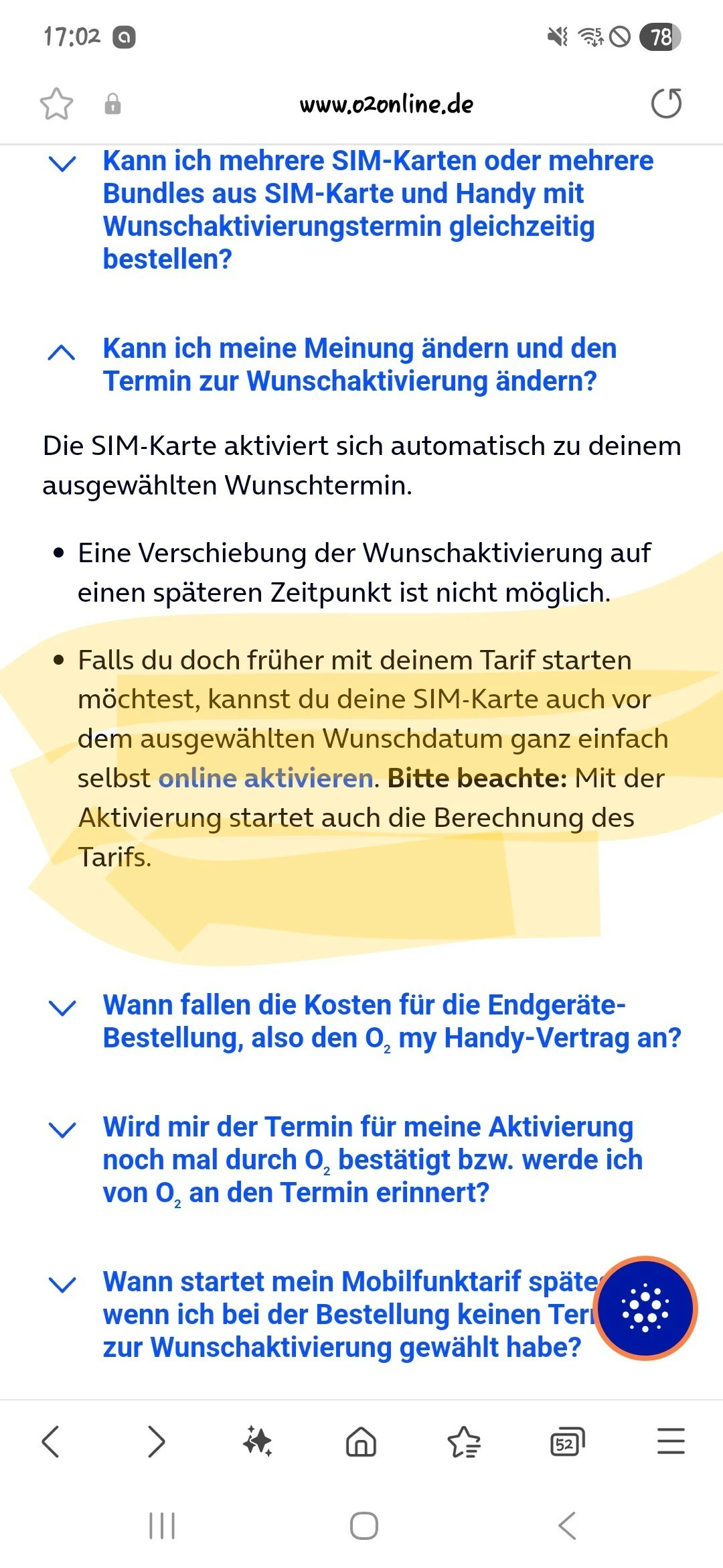 Hatte gerade das (siehe screenshot O2 FAQ Homepage) gefunden, also theoretisch doch möglich frpher zu aktivieren, also vor Wunschtermin...  funktioniert aber leider nicht aufgrund einer Fehlermeldung... werde dann doch die Hotline morgen anrufen...