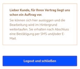 Zwischenzeitlich hatte ich immer wieder versucht, den Mobilfunk der AW auf dem iPhone zu aktivieren. Jedes Mal bekam ich nach meinem Login die Meldeung »dass bereits ein Auftrag vorliegt  etc«.
