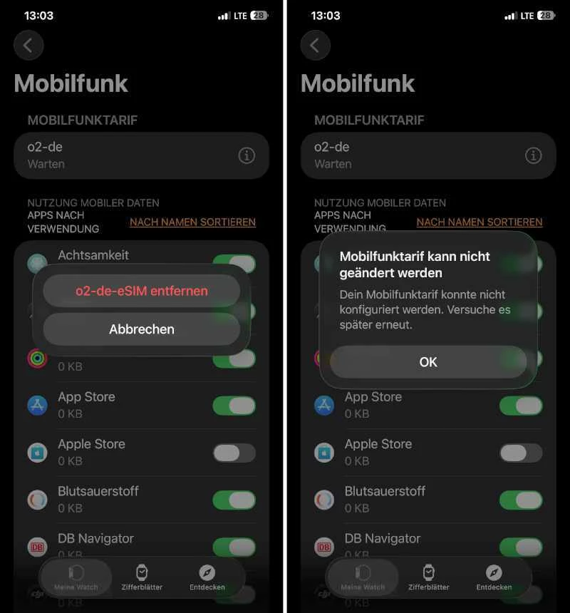 Hallo, ich versuche seit Juni, meine Apple Watch ins O2 Netz zu kriegen, leider ohne Erfolg und ohne Bestätigung seitens O2. Dieses Problem weitet sich nun für mich aus.