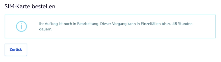 Dort wird die eSIM als »zur Aktivierung bereit stehend« anzeigt, aber der zu klickende Aktivierungs-Link tut nichts als zur »SIM-Karten-Aktivierung« zu springen. Und dort gibt es nichts weiter als einen »Zurück« Button. 🤷🏻