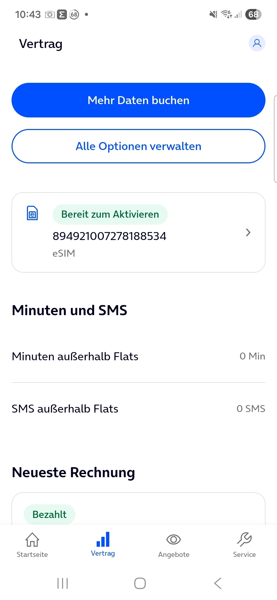 Danke für den Hinweis. Hier die App- Screenshots. Im Browser lässt's sich gar nicht aktivieren. Keine Fehlermeldung, keine Reaktion nach Klick auf "jetzt eSIM aktivieren". Werde morgen mal mit dem Service Kontakt aufnehmen. Danke schon mal für deine sonntägliche Unterstützung.