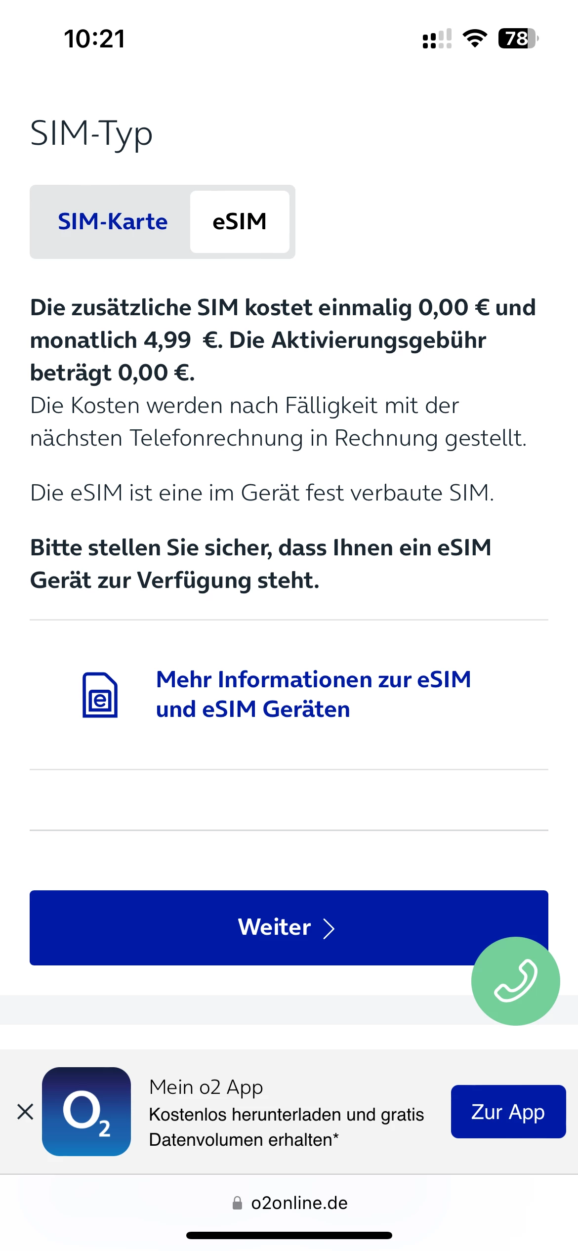 ich habe gesehen, dass für den o2 Mobile S Boost eine eSIM und eine physische SIM aktiv sind.