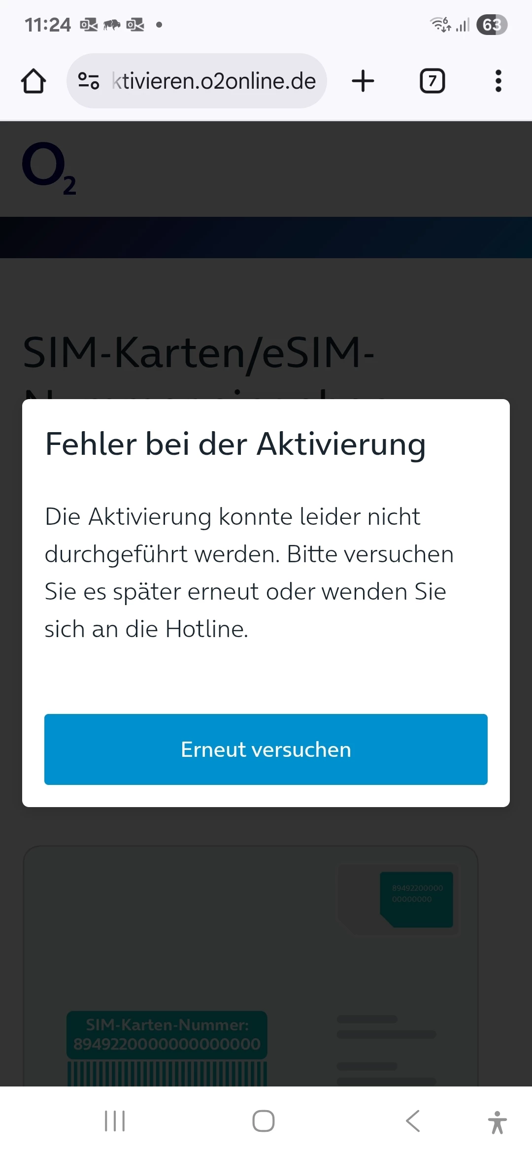 “SIM konnte aus technischen Gründen nicht aktiviert werden“