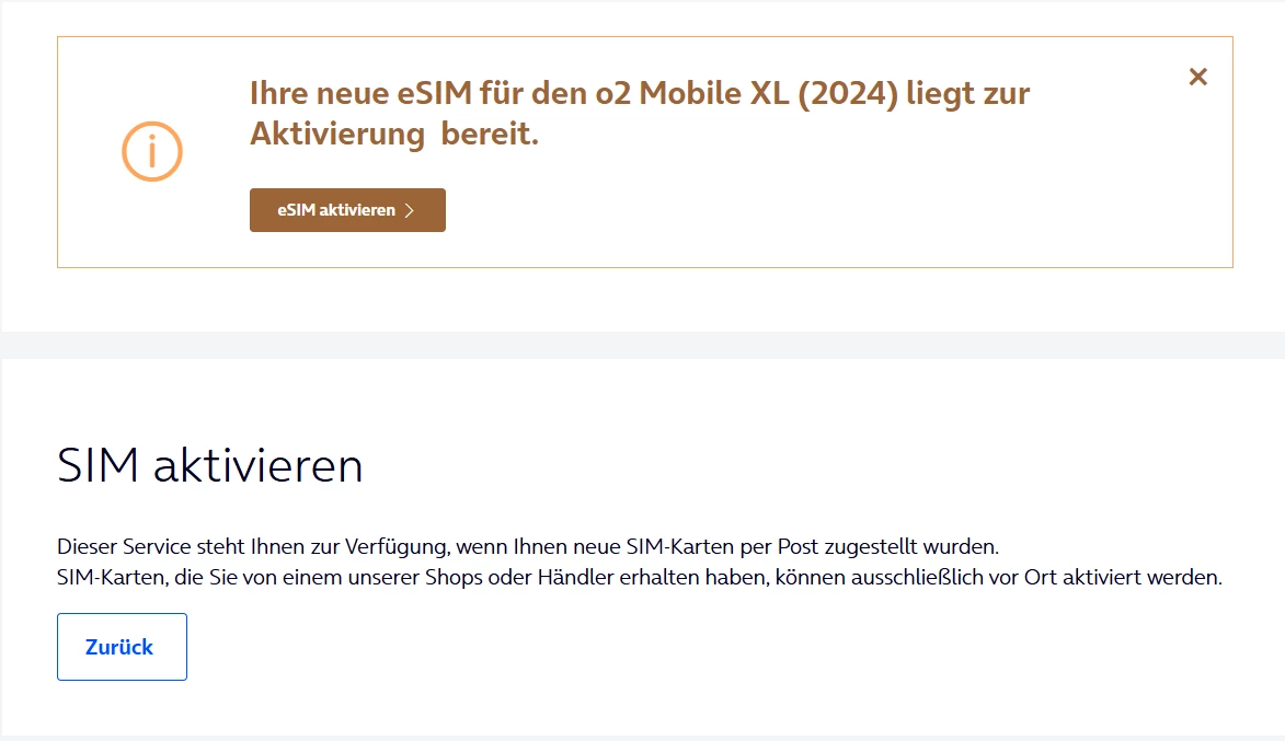 “Ihre neue eSIM für den o2 Mobile XL (2024) liegt zur Aktivierung  bereit.”