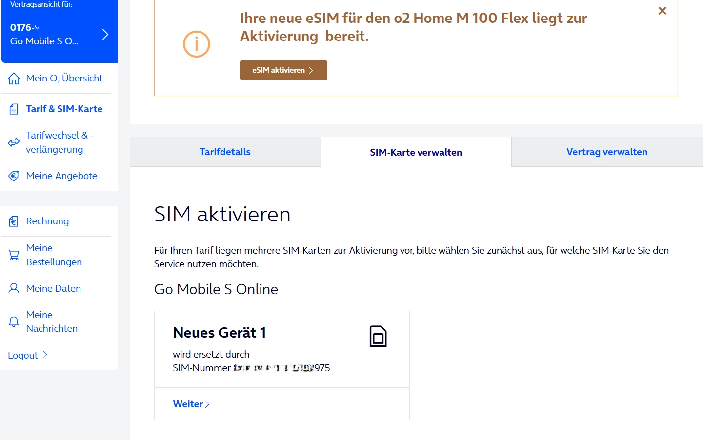 Habe auch noch einen Home M Flex Vertrag, komischerweise wird mir da ebenfalls angezeigt das eine neue eSim Karte verfügbar wäre obwohl ich für den Go Mobile S Vertrag eine bestellt habe.
