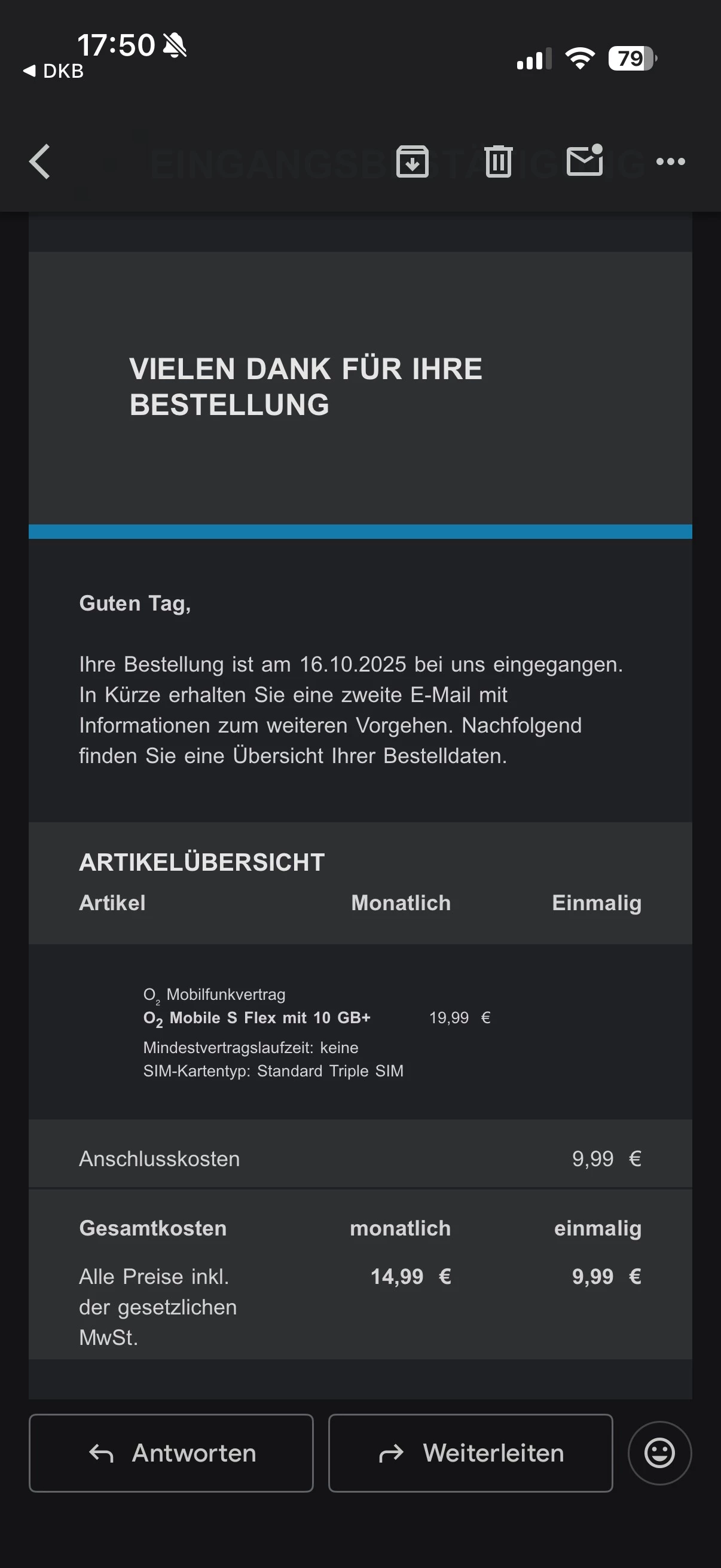 ich habe Ende September ein neues I-Phone 17 + o2 Mobile M Online bestellt.