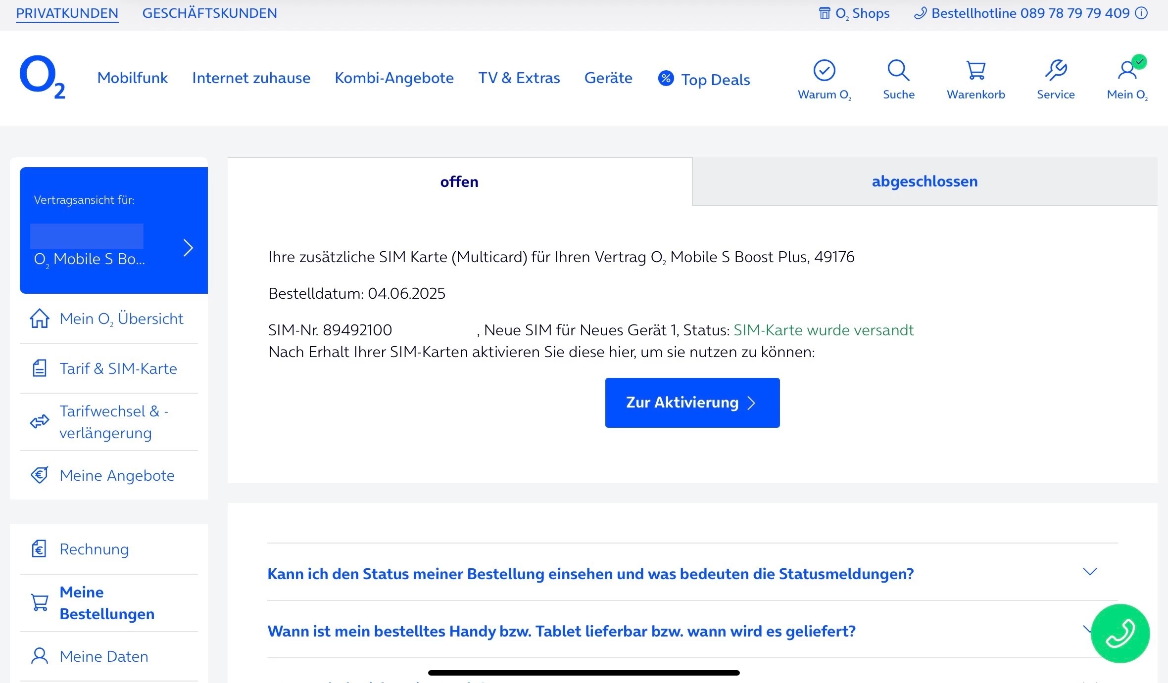 Ich habe eine zusätzliche Multikarte für eine Telefonnummer bestellt. Bekomme nach dem absenden in MyO2 eine SMS die eine falsche Telefonnummer betrifft. (Ich habe 3 aktive Verträge) also dachte ich das ich mich versehen habe und habe das noch mal gemacht, nun mit Screenshot, Ergebnis ist wieder eine falsche Zuordnung.