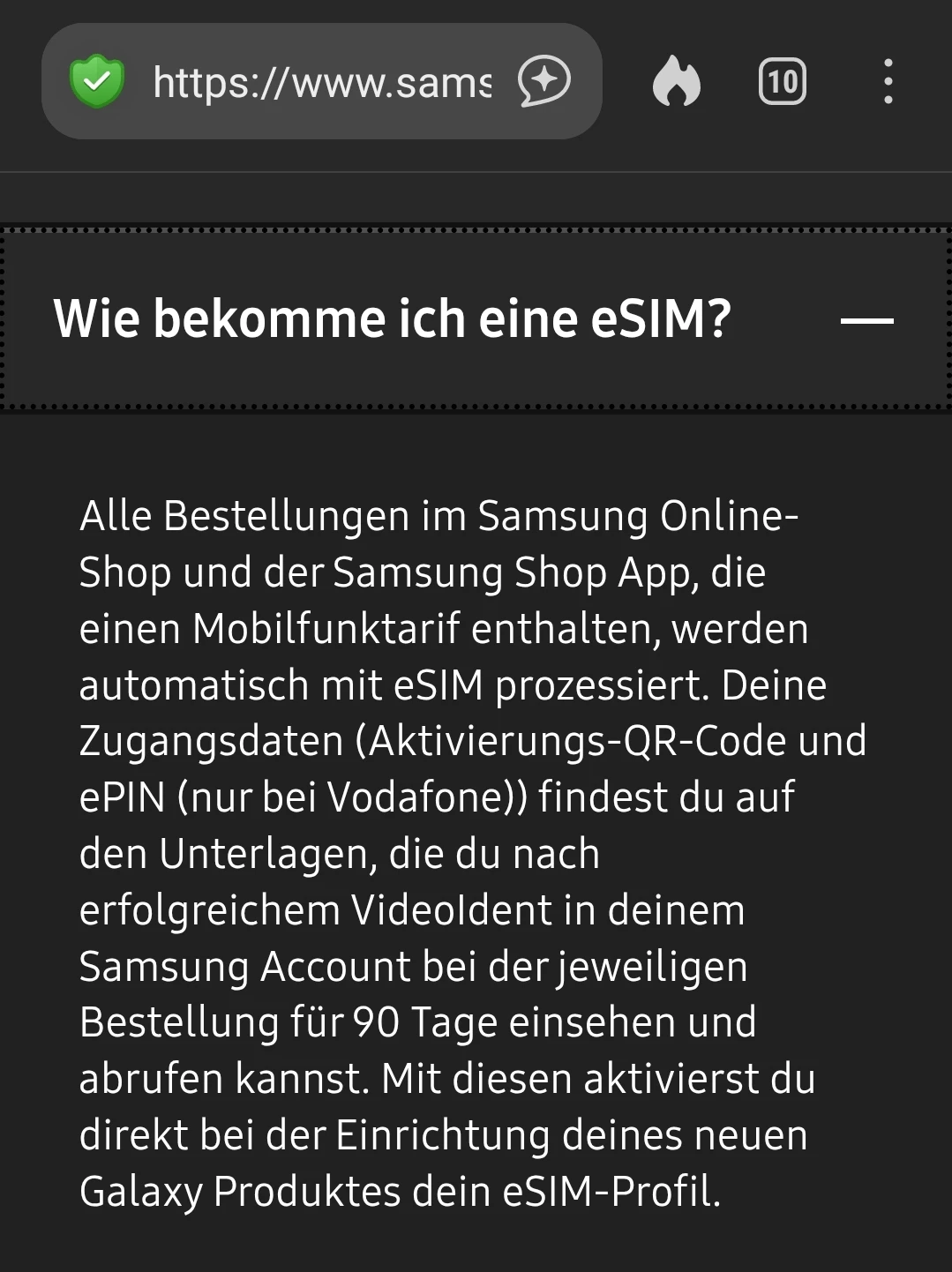 Das eSIM-Profil findest du in deinem Samsung-Account.