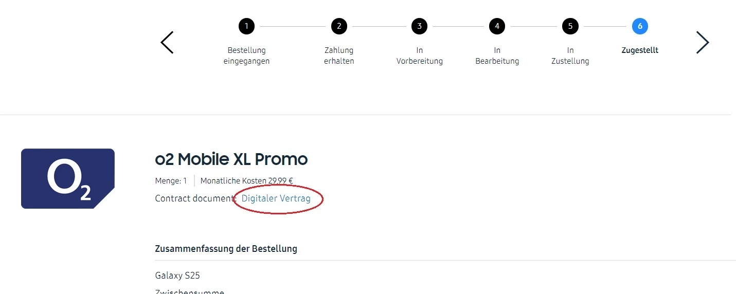 Ich habe meinen Vertrag über den Samsung Online-Shop abgeschlossen, zusammen mit dem Handy Galaxy S25 Ultra.