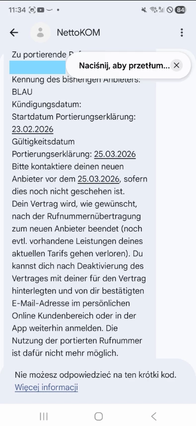 Ich mache mir Sorgen, da meine Nummer ab dem 20. März bei beiden Anbietern nicht mehr existieren wird.